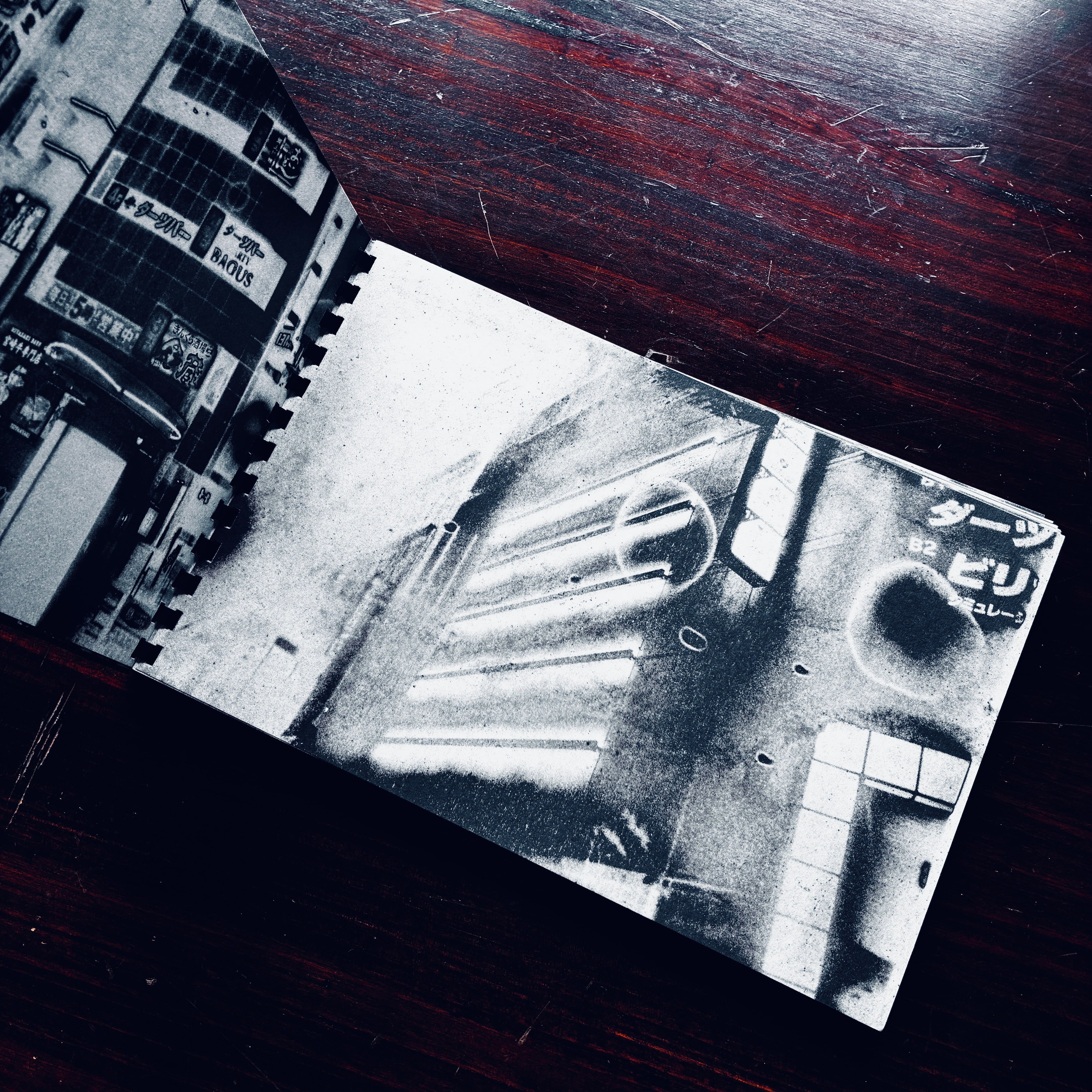 本作は、即興性と現場での偶然性をテーマとしたプロジェクトであり、「ライブ・ブックメイキング・ステーション」と銘打ち、その場で本を制作することで、本作りのプロセスを解き明かすことを目的として企画された。作者が日本を旅した際に撮影されたモノクロ写真のシリーズ作品を使用してその場で印刷、製本している。